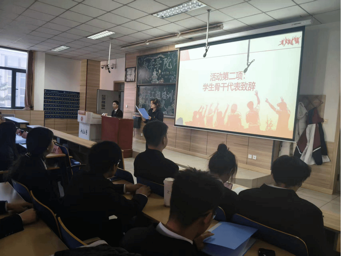 团委学生骨干、各团支部书记及副书记、各班级学生骨干出席仪式,全体青马班学员齐聚一堂,共同开启成长新征程,仪式由付博文同学主持。