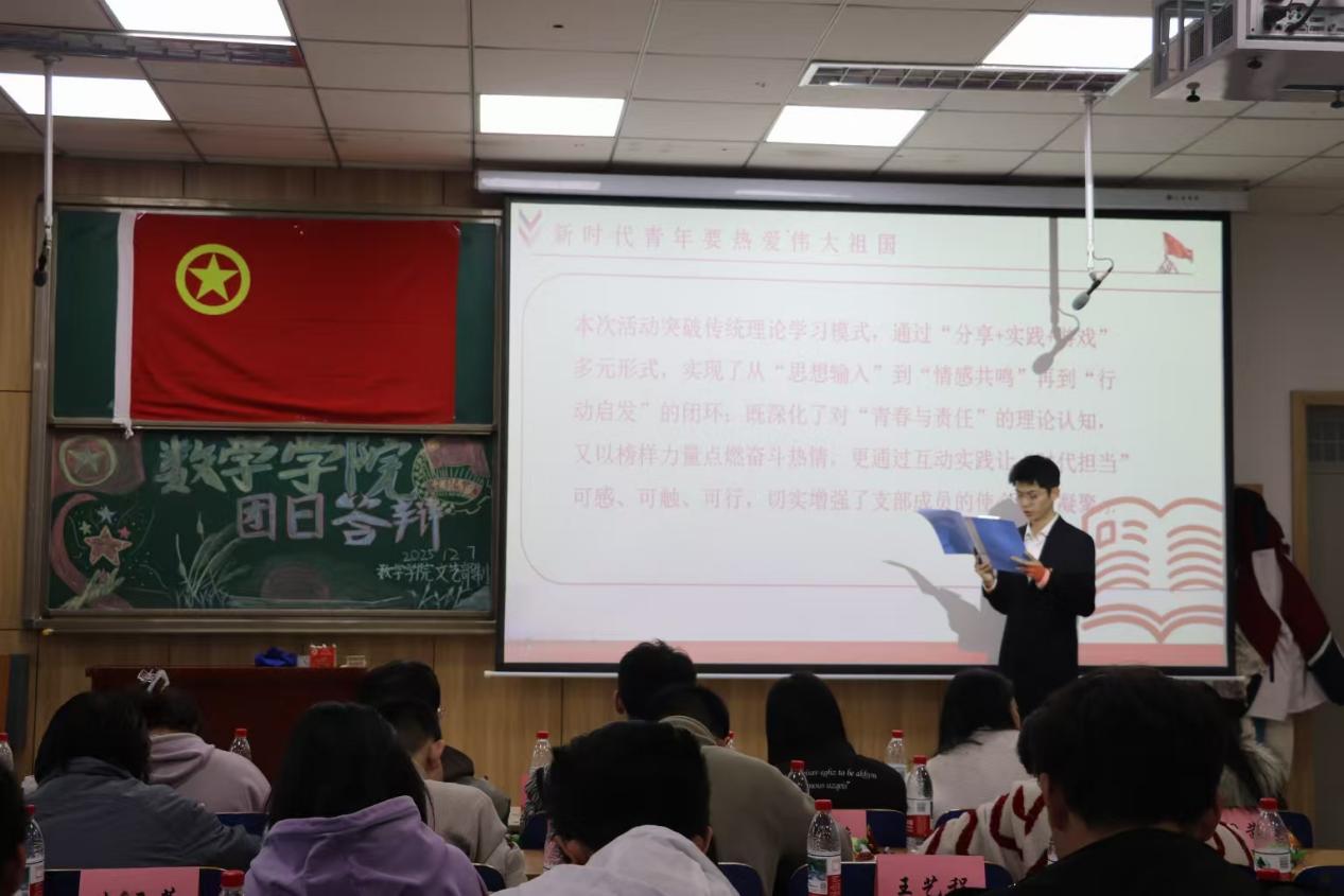答辩中,团支书用 PPT 展示团日活动,各支部同学团结且具凝聚力,积极奉献,其活动既彰显青年的时代价值,也明确强国建设的青春力量。