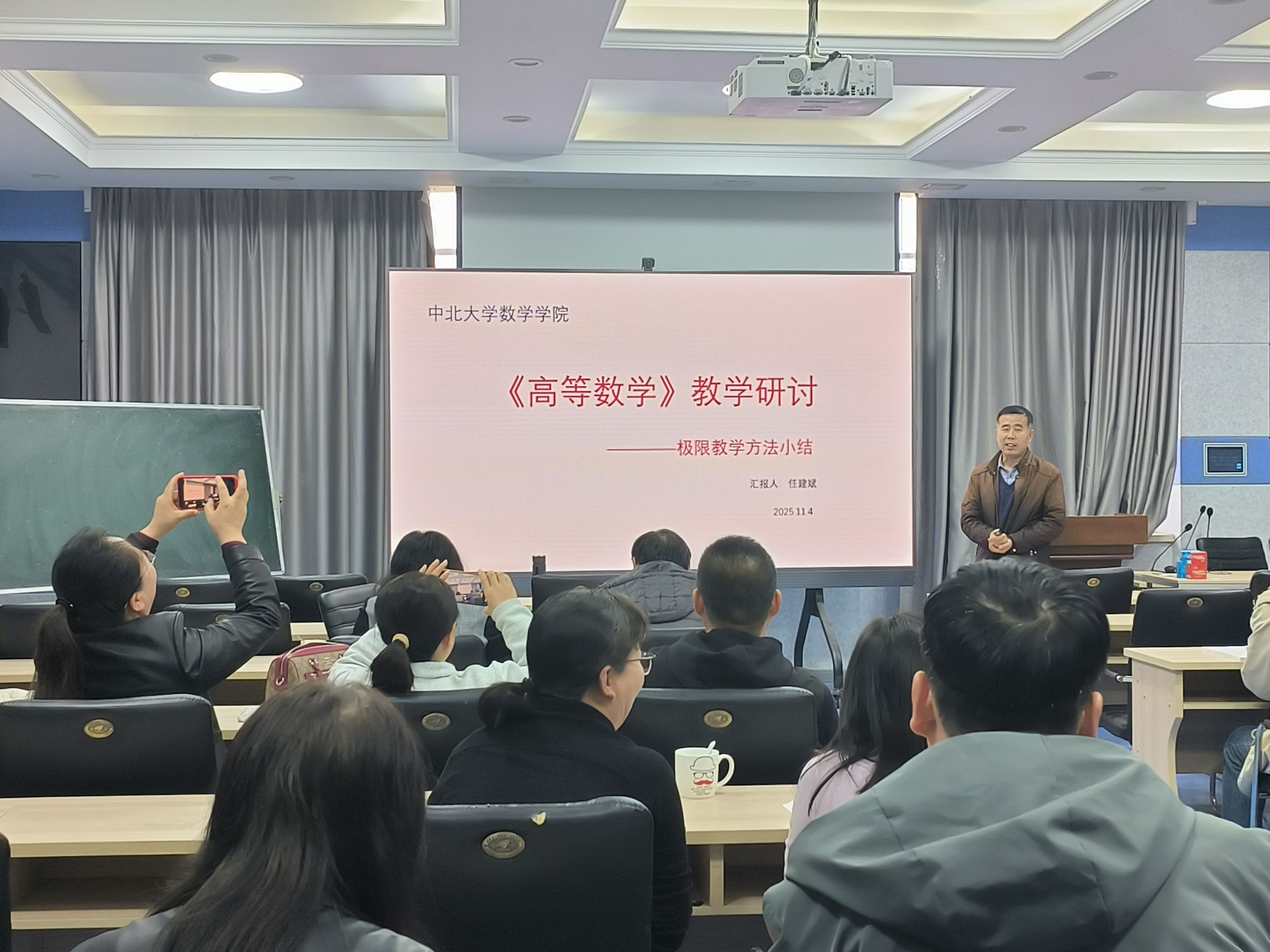 为提高教学质量、促进教学经验交流,114日下午,大学数学教学中心于九号楼924会议室举办高等数学教学研讨会。全体任课教师参加本次会议,会议由朱志峰老师主持,特邀任建斌老师担任主讲。
